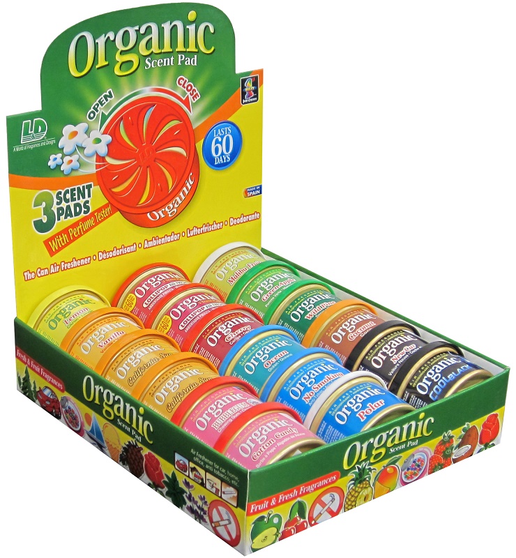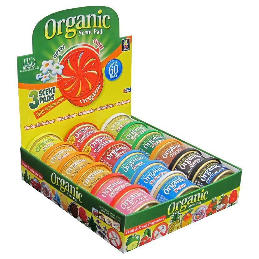 Prodejní box s mixem 18 ks hliníkových plechovek s plastovým víčkem, kterým lze nastavit intenzitu vůně a s praktickým testerem dané vůně. Uvnitř plechovky jsou tři polštářky z přírodních vláken impregnované 30 g koncentrované esence, což zajišťuje velkou difúzi parfému s trváním přes 60 dnů.