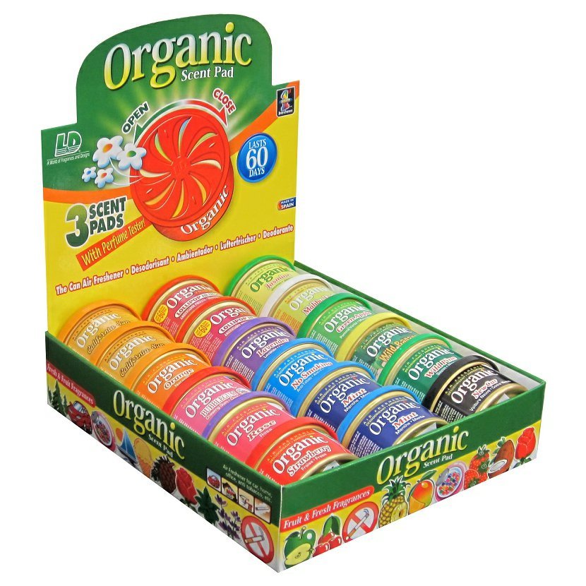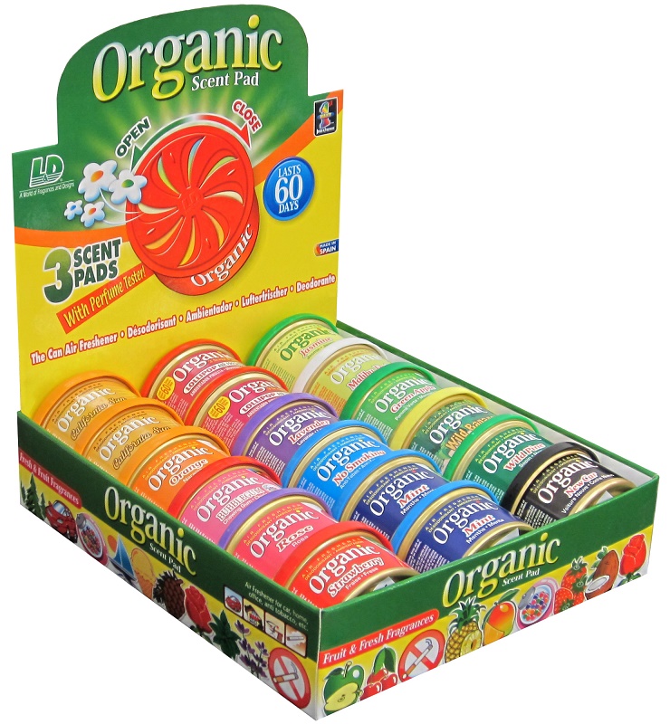 Prodejní box s mixem 18 ks hliníkových plechovek s plastovým víčkem, kterým lze nastavit intenzitu vůně a s praktickým testerem dané vůně. Uvnitř plechovky jsou tři polštářky z přírodních vláken impregnované 30 g koncentrované esence, což zajišťuje velkou difúzi parfému s trváním přes 60 dnů.