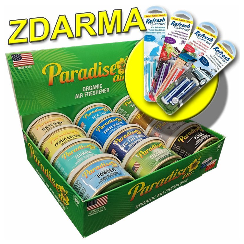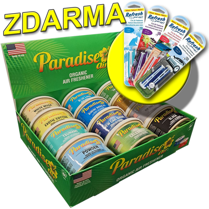 Prodejní box s mixem 12 ks hliníkových plechovek s plastovým víčkem, kterým lze nastavit intenzitu vůně a s praktickým testerem dané vůně. Uvnitř plechovky jsou tři polštářky z přírodních vláken impregnované 42 g koncentrované esence, což zajišťuje velkou difúzi parfému s trváním přes 60 dnů.