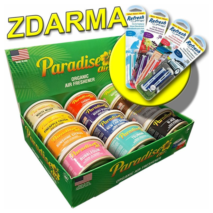 Box s 12 ks osvěžovačů vzduchu v plechovce.