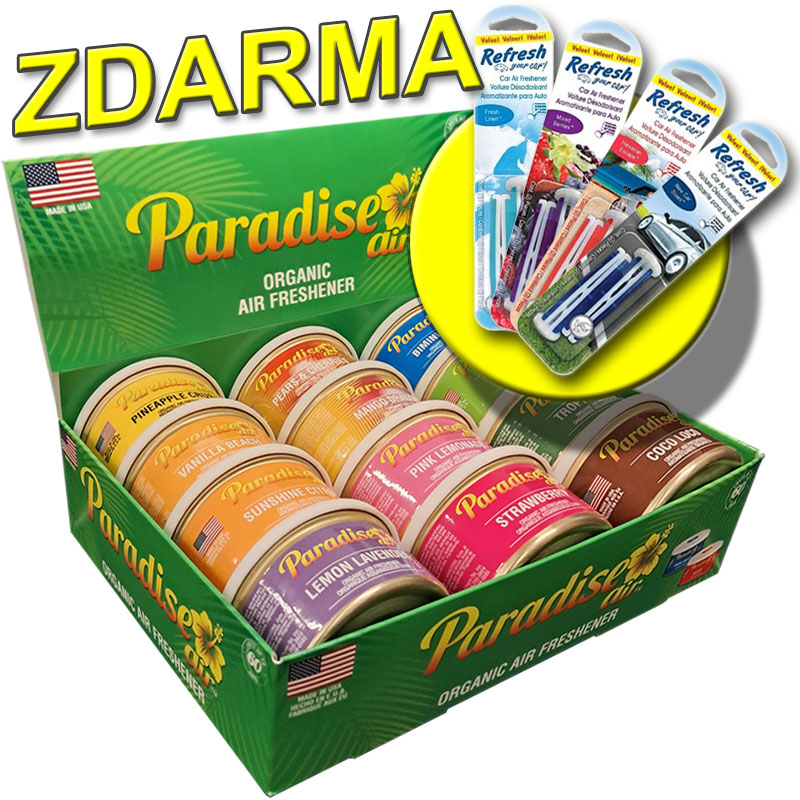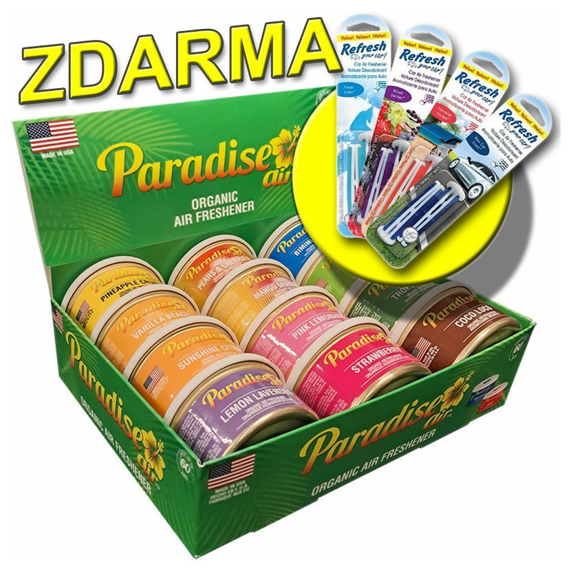 Prodejní box s mixem 12 ks hliníkových plechovek s plastovým víčkem, kterým lze nastavit intenzitu vůně a s praktickým testerem dané vůně. Uvnitř plechovky jsou tři polštářky z přírodních vláken impregnované 42 g koncentrované esence, což zajišťuje velkou difúzi parfému s trváním přes 60 dnů.